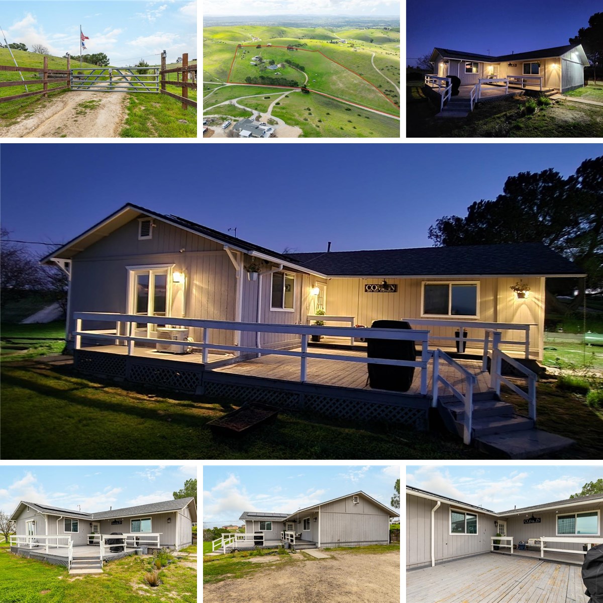 12.5 Usable Acres with Panoramic Paso Robles Views – Private Homestead Retreat Enjoy sweeping Green Mountain and valley views from this private 12.5-acre hilltop property just a short drive from downtown Paso Robles and Atascadero. Fully usable and cross-fenced, the land is ideal for animals, homesteading, small-scale farming, or anyone seeking space, privacy, and rural living. Properties with fully acreage like this—offering privacy, views, and existing infrastructure—is increasingly difficult to find in the Paso Robles area. A picturesque tree-lined driveway leads to a comfortable 3-bedroom, 2-bath home offering 1,644 sq ft with an open-concept layout connecting the kitchen, dining, and living areas. The home features a front deck perfect for enjoying sunsets and countryside views, newer roof, dual-pane windows, central air and split A/C units, and energy-saving solar to help keep electric costs low. The property is well suited for country living with irrigation throughout, mature fruit trees, raised garden areas, a large chicken coop, and a new submersible well pump. Additional improvements include a detached one-car garage, spacious three-bay open workshop, and a dedicated laundry room with washer, dryer, and ample storage. Two RV sites with electrical service (each with separate meters) and water hookups offer flexibility for guests, extended family, or possible income opportunities. Unique A-Frame sleeping quarters with private access add charm and potential for guest accommodations or glamping. With usable acreage, infrastructure already in place, and breathtaking views, this property offers a rare opportunity for a private Paso Robles homestead or rural retreat. Well and water reports available in supplements.